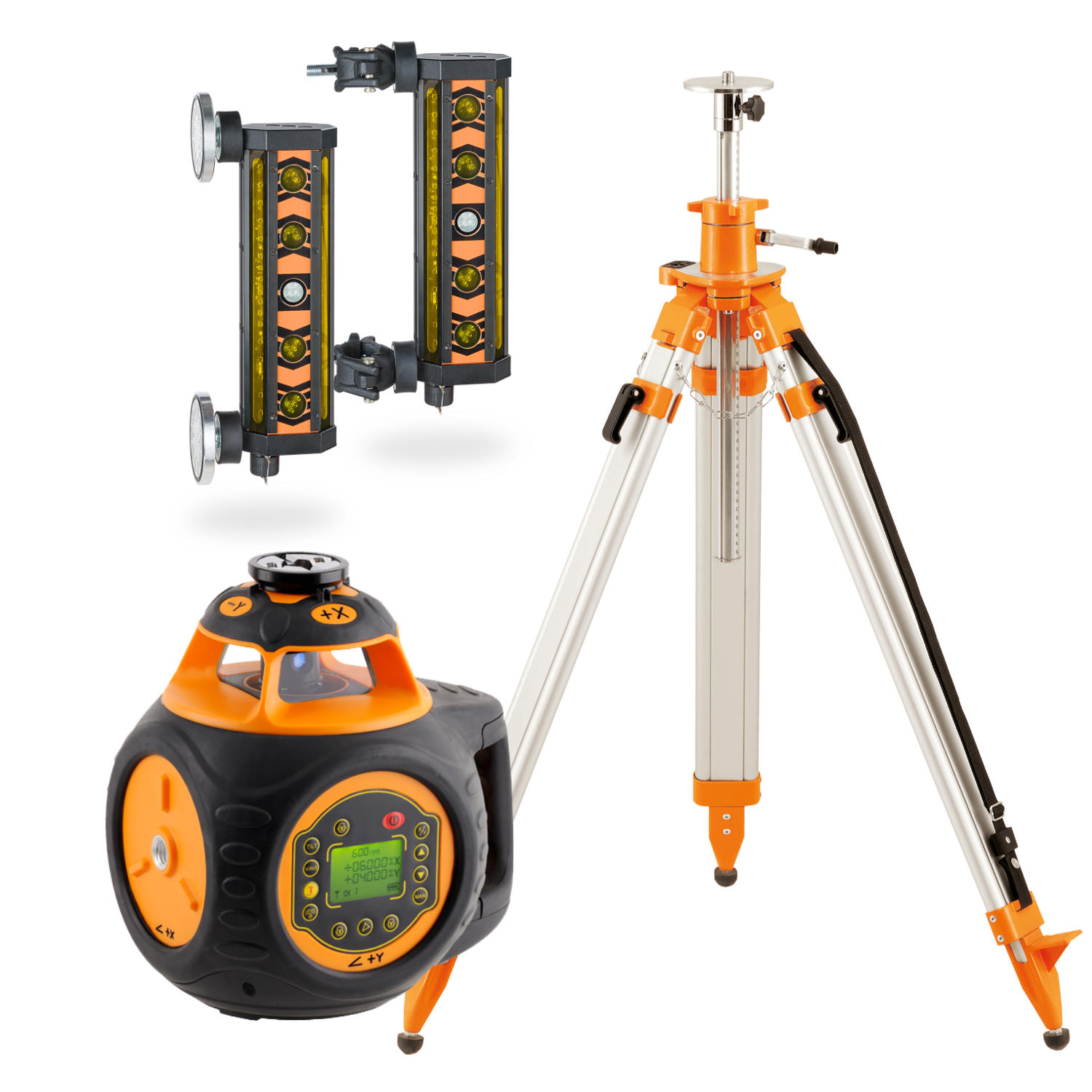 Rotačný laser má možnosť nastavenia sklonu do +/- 10 % v rovine X aj Y a tri rýchlosti rotácie (300, 600 a 1200). Má zabudovanú funkciu TILT(stráži si výšku a pri jej zmene sa znovu nespustí) kombinovanú s funkciou VWS (vibration wind security = pri slabých otrasoch spôsobených vetrom, alebo prejazdom automobilu okolo laseru, stále rotuje s nemá snahu sa sám urovnávať). Súčasťou dodávky je diaľkové 9 kanálové ovládanie, so zabudovaným displejom a dosahom 150 m. Jeho váha je 3.85 kg. Výdrž Li-Ion akumulátoru je 40 hodín. Rotačný laser má 5/8" závit pre upevnenie na stavebný statív. Spĺňa normu IP 66.