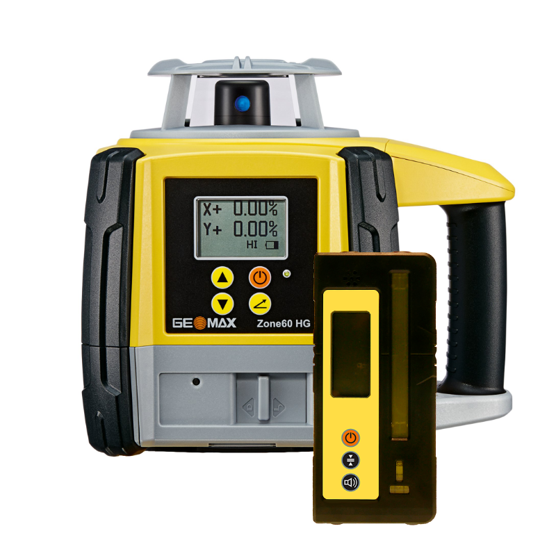 Rotačný sklonový laser Geomax Zone60 HG pre horizontálnu rovinu a sklony v osiach X,Y (± 8 % v oboch rovinách).
